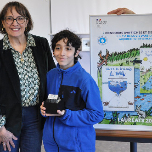Carole Kervevan, directrice de la délégation Centre-Loire a félicité la classe lauréate de 6e. Elle a remis à Élias, lauréat, un diplôme et un trophée ainsi que l’affiche du concours 2026.